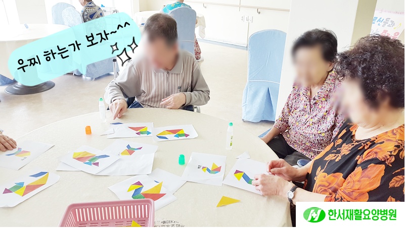 오전엔 지난 주에 이어 어르신들과 '칠교놀이'를 진행하였습니다.^^