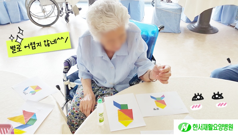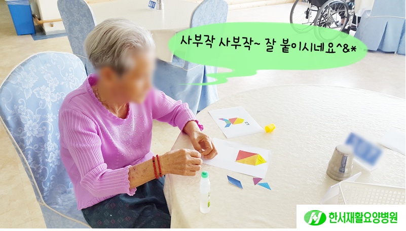 탁월한 만큼 어르신들에게도 색을 구별하여 조각을 맞추는 활동이