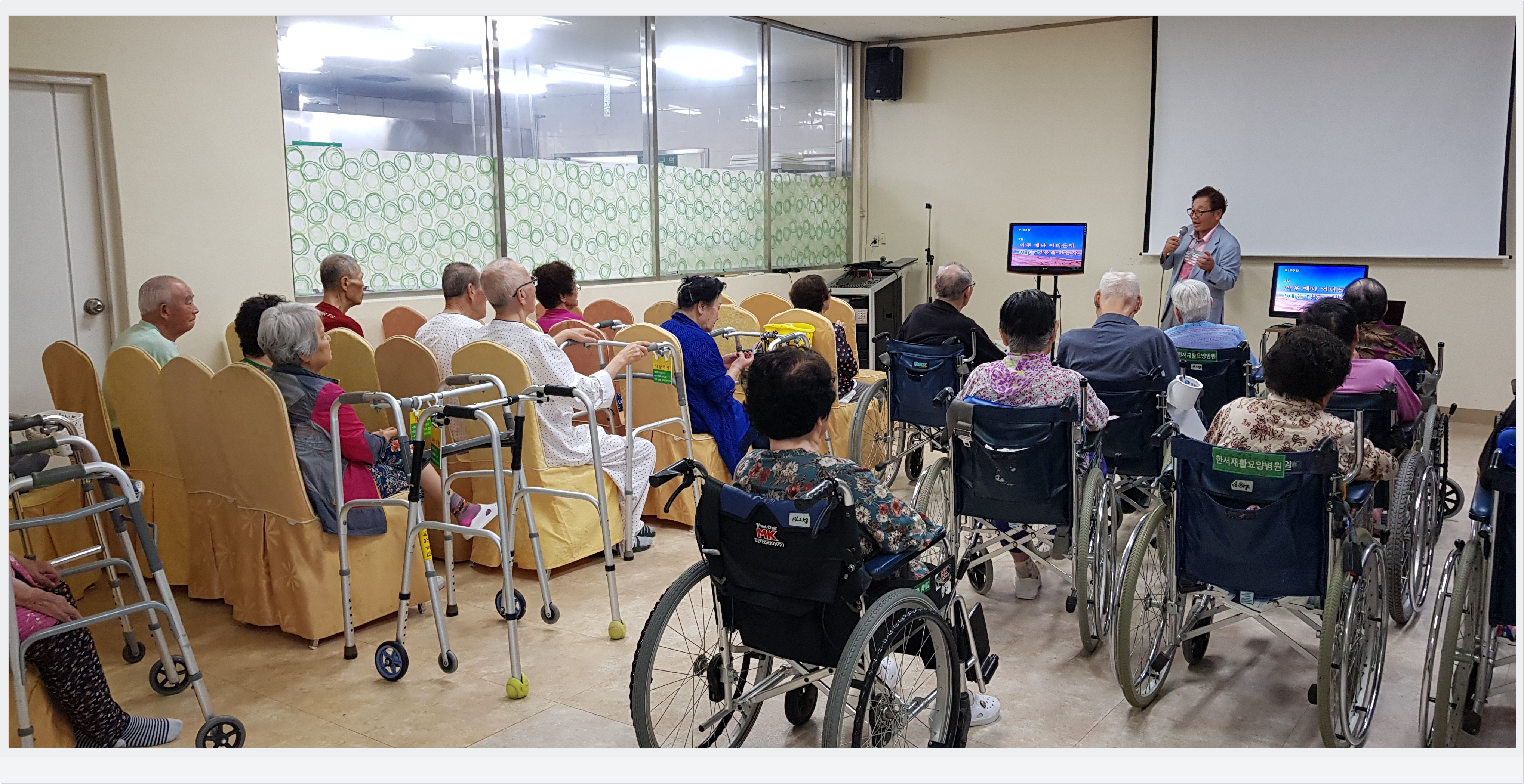일찍부터 준비하고 미리내홀에서 기다리시는 어르신도 계시네요.