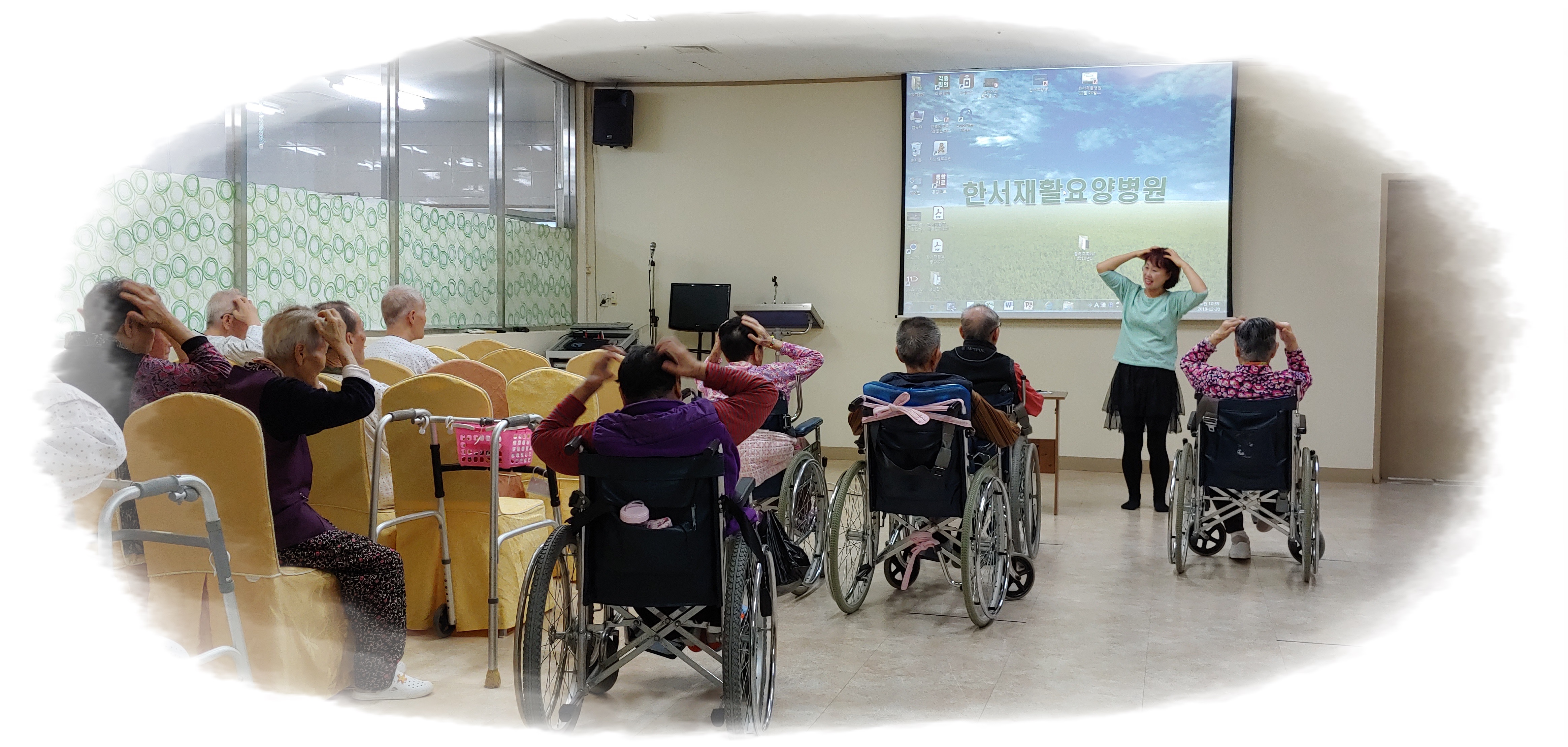 어르신들이 좋아하는 동요와 함께 건강체조도 하고