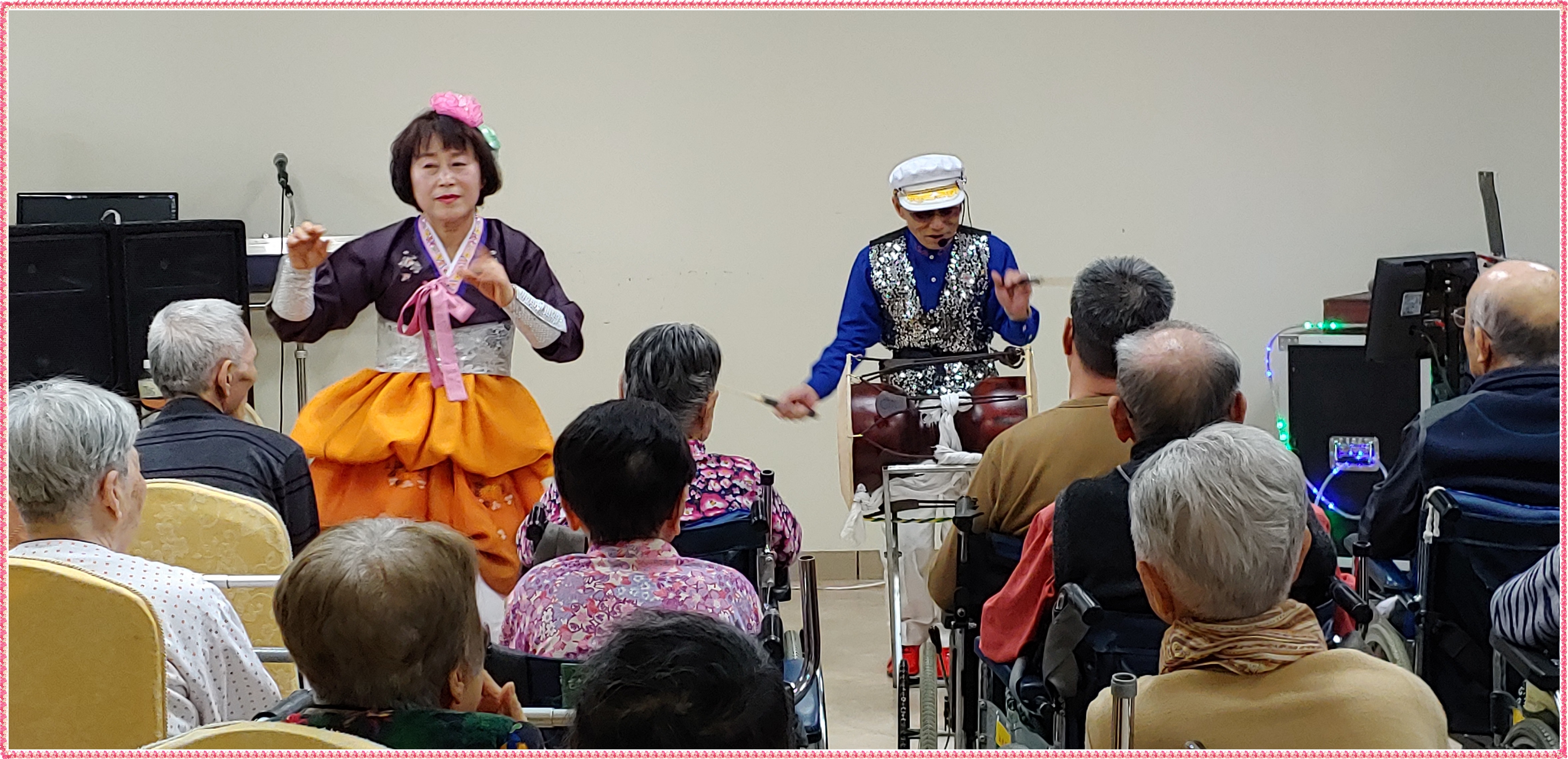 화려한 무대의상만으로도 어르신들의 시선을 집중시키셨어요.