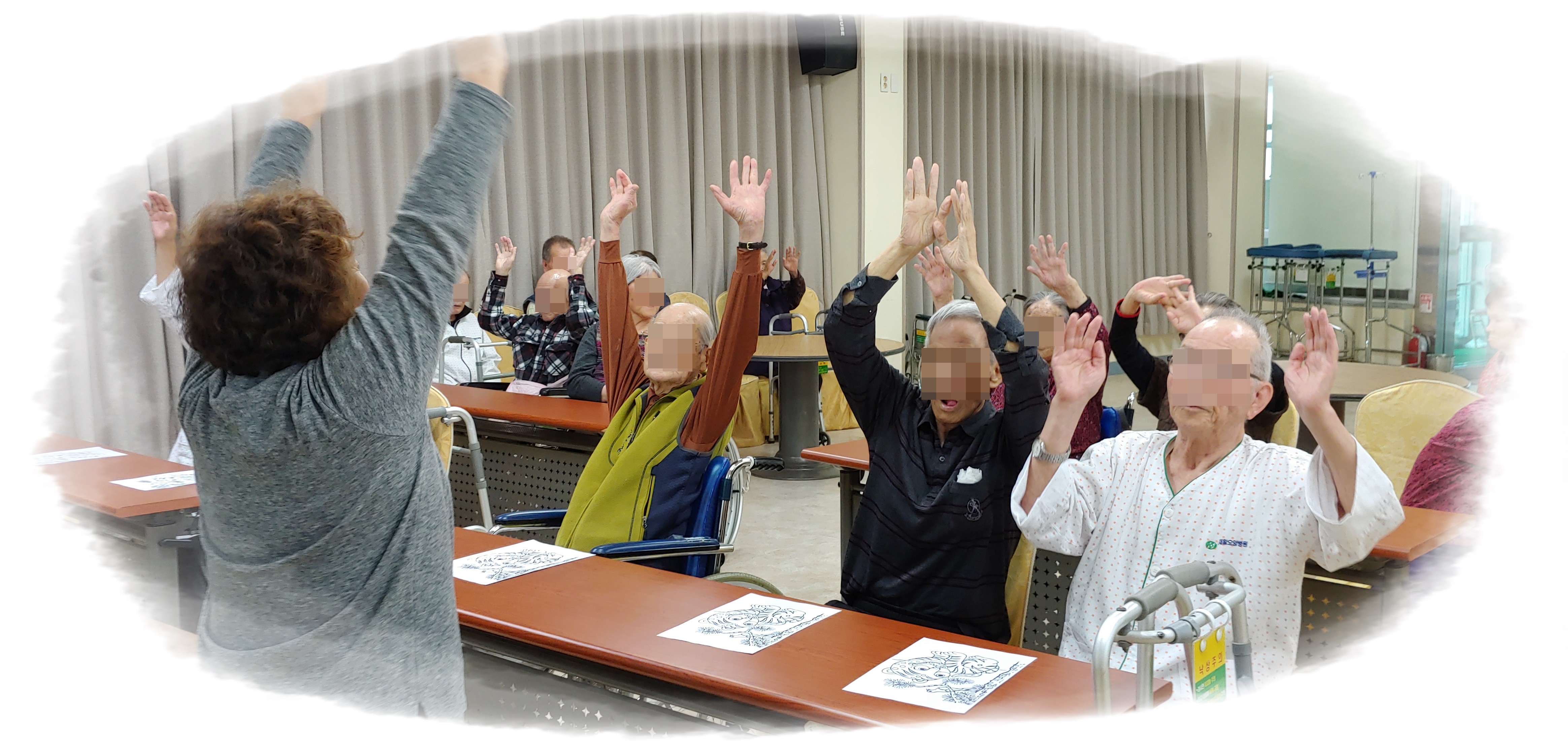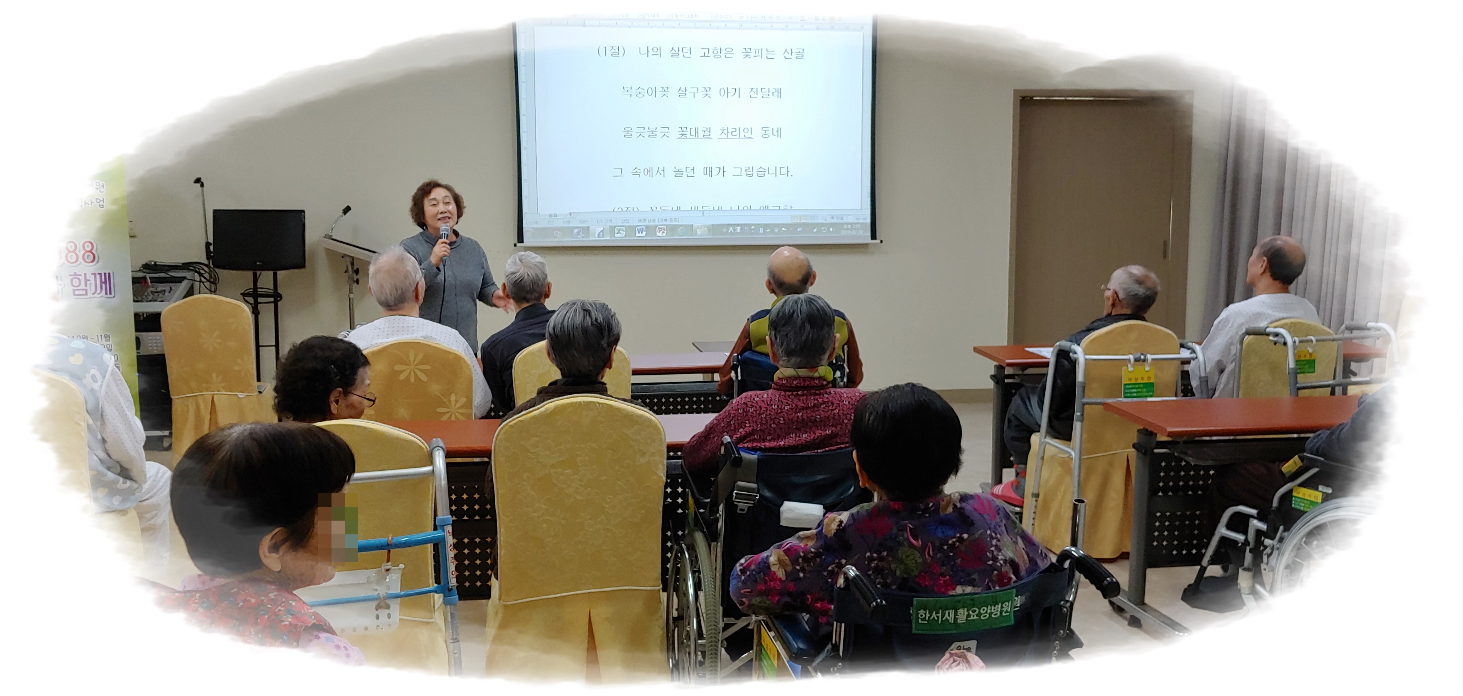 우리 어르신들과 미리내홀에 모여