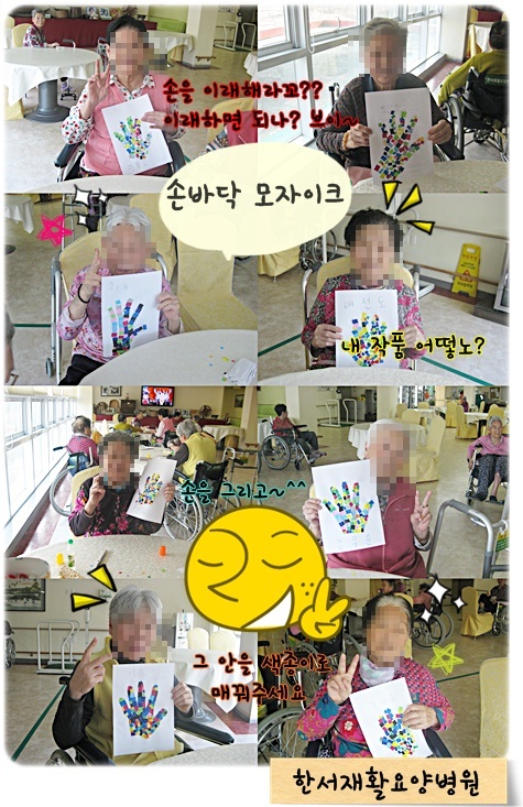 어르신들의 손바닥을 종이에 대고 그리고~